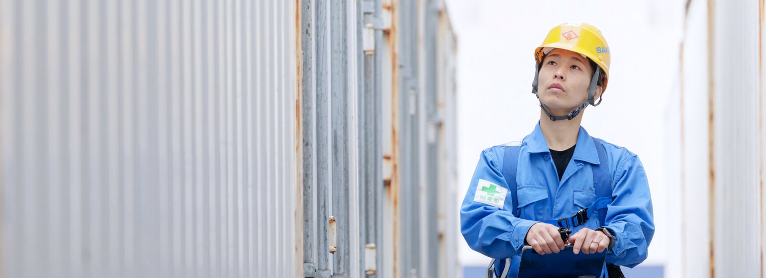 日本有数の貨物取扱量を誇る千葉港で、コンテナ船への積付計画を練る「本船プランニング」や、現場を指揮する「フォアマン」を担っています。また、ターミナル内倉庫でのオペレーションや収支などの管理業務も担当しています。