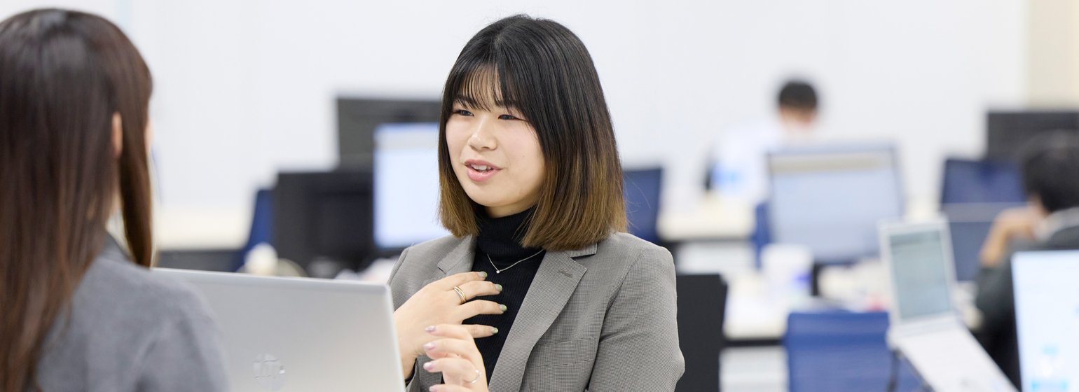 大学時代はラクロス部の副キャプテンとして、50名以上の部員をまとめるつなぎ役を担う。スポーツに打ち込んだ経験から、チーム一丸となって目標へ向かう喜びを仕事でも味わいたいと考え、山九へ入社。4年間の現場勤務で工程管理の経験を積んだ後、現在は本部で、現場を支えるITツールの開発や情報発信を担当している。